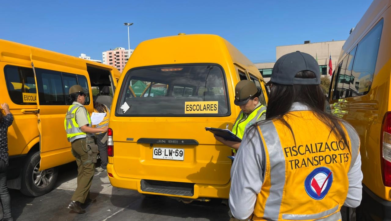 En la explanada del Estadio Regional Calvo y Bascuñán de Antofagasta, se realizó una inspección a más de una decena de transportes escolares de la comuna. En la actividad donde participaron fiscalizadores del Ministerio de Transportes y Telecomunicaciones, junto con la SIAT de Carabineros Chile, se revisaron las condiciones de seguridad de cada vehículo, documentación y la adhesión del sello de seguridad 2025.