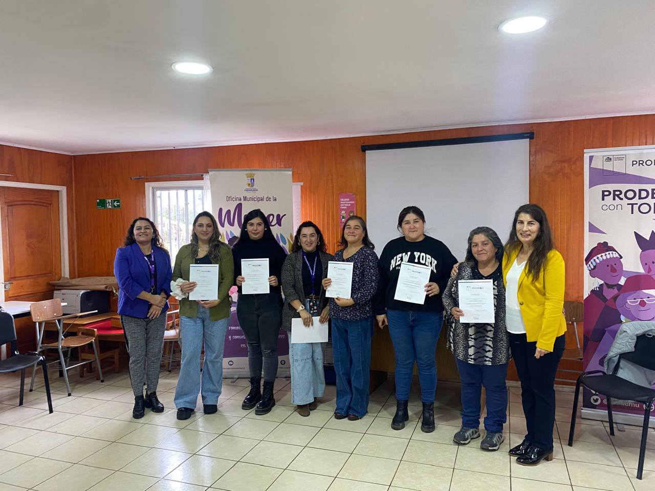 Ceremonia de certificación del taller Empoderadas, realizado por la Municipalidad de Curanilahue, a través de la oficina de la Mujer e impulsado por la Fundación de Promoción y Desarrollo de la Mujer (Prodemu).